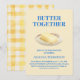 This trendy design features a charming butter illustration on a plate, a soft yellow gingham background, and a delicate bow detail for a sweet and stylish look. Perfect for a modern, playful baby shower with a unique food-inspired theme.