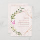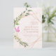 Funeral invitation design for a deceased loved one with geometric floral illustration and a butterfly alluding to the motivational quote that it includes.