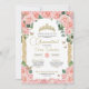 Todo o texto pode ser editado para qualquer ocasião. Rosas rosa, floral rosa, rosa elegante, rosa elegante e quinceanera de ouro, marmelo rosa, convite de aniversário floral cor-de-rosa.