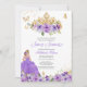 Doce 16 Convite de aniversário em tons lilás e lavandas de púrpura com borboletas de ouro e uma bela tiara e uma garota de vestido de bola. Visite o compro para obter mais variações no tom de pele e combinações de cores