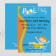 Este convite de aniversário de piscinas bonitinho apresenta um garotinho com cabelo ruivo saltando em um tubo interno sobre um fundo de água azul. Completamente personalizável.