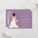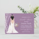 Uma cortina graciosa de pérolas e uma noiva de vassoura com cabelo preto em um delicado vestido de noiva de rendas, esta design é lindamente adornada com um buquê exuberante de rosas, grama-pampas, eucalipto e ranúculo em fundo roxo.