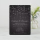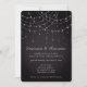Linhas Elegantes Luzes QR Código Damasco Preto Gradiente de Casamento Preto com Luzes de String de efeito cintilante. A cor e o tipo da fonte podem ser alterados através do menu de edição. Adicione seu código QR à parte traseira para a conveniência de seus convidados a RSVP e veja todos os detalhes em seu site. Basta alterar o URL de exemplo no modelo para seu próprio e seu código QR será gerado automaticamente.