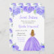 Este doce 16 convite apresenta flores florais roxas, brilhantes, e uma bela princesa com cabelo loiro e um vestido elegante. Isto é perfeito para uma doce festa de aniversário de dezesseis.