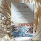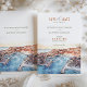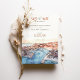 Ponha o tom para um casamento memorável de destino com este cartão "Salvar a Data", com uma ilustração impressionante da marina do Cabo San Lucas. O trabalho de arte capta o pôr do sol vibrante sobre o porto, misturando pêssego quente, terracota e tons de coral com azuis profundos e matizes aquamarinos da água. A tipografia moderna do cartão, combinada com os elementos clássicos da escrita, adiciona um toque de elegância e sofisticação, perfeita para anunciar seu dia especial. Ideal para casais planejando um romântico casamento à beira-mar, este convite evoca o charme e a beleza do paraíso costeiro da Baixa Califórnia.
