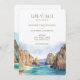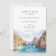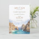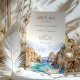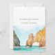 Anuncie seu dia especial com esta maravilhosa carta "Salve a Data" com uma cena de aquarela de Cabo San Lucas, México. O cartão exibe o icônico Arch do Cabo contra as águas turquesas serenas, com tons arenosos quentes e sotaques ricos marrom-ouro acrescentando profundidade e caráter. O céu combina tons brancos e azuis e cremosos, dando ao cartão uma sensação de sonho e romântico. A combinação de fontes modernas com uma escrita elegante adiciona um toque de sofisticação, fazer perfeito para uma celebração de casamento de destino. A parte de trás da carta continua o estilo aquarela, mantendo um olhar coeso e artístico que reflete a beleza da Península Baja.