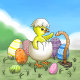 O frango recém-eclodido deseja um felz pascoa à minhoca.