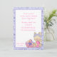 Convite de Páscoa bonito com coelho e cesta rosa de ovos de Páscoa e borda floral roxa. O convite pode ser personalizado para a caça de ovos da Páscoa, quedas de Páscoas, etc. Os convites vêm com envelopes e sua escolha de papel.