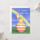Um convite de caça ao ovo de Páscoa com minha imagem de um pequeno frango saltando para fora de um ovo de Páscoa.