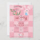 Para a festa de celebração da Páscoa, escolha este modelo de convite de Coelho de Aquarela Rosa com Caça aos Ovos de Páscoa Brunch, com desenhos doodle desenhados à mão, modernos e fofos, sobre um fundo xadrez rosa em dois tons.