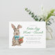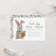 Nossa Charming Floral Páscoa Ovina & Brunch Invitation apresenta ilustração aquosa do coelho da Páscoa segurando um cesto de piquenique rústico com ovos coloridos de Páscoa e flores e cenouras rosadas e vermelhas. O texto diz "Caça de Ovos de Páscoa & Brunch" e pode ser atualizado para fazer um convite personalizado para qualquer evento de primavera! A parte traseira do cartão apresenta um padrão de aquarela de coelhos de Páscoa e ovos de páscoa e flores frescas. Todo o texto pode ser atualizado para criar um convite exclusivo para o seu evento de primavera especial.
