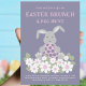 Caça de ovo Coelho da Páscoa e convite para brunch com um adorável coelho primavera, segurando um ovo de Páscoa rosa e roxo cercado por folhagem floral e eucalipto margarida em fundo roxo. Modelos de script de tipografia de escrita manual em rosa e branco para todos os detalhes da sua divertida festa de primavera. Arte original da artista Catherine Sweetman