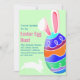 Diverte-te com uma Páscoa maravilhosa, com uma caça ao ovo maravilhosa! Estes convites de caça aos ovos de Páscoa têm um estilo grande e vibrantemente colorido moderno, design de ovo de Páscoa adornada com orelhas de coelho de disquete!