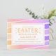 Um fundo pastel brilhante e festivo listrado com texto para um brunch de Páscoa e caça aos ovos coloridamente divertidos - basta personalizar para incluir seus próprios detalhes pessoais do partido e título do evento para a Páscoa Brunch, caça aos ovos ou festa.
