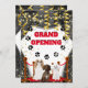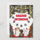 A maneira perfeita de anunciar a grande abertura do seu novo negócio de treinamento para cães / cães / obediência a cães com esta ilustração apresentando um círculo de patas de cães negros moldando um modelo preto e vermelho contra um fundo branco. As patas são enquadradas por galerias de ouro flutuantes verticais; luzes de cordas; Cortinas de teatro negro; um tapete vermelho com varas eretas ligadas por fios vermelhos e sequências luxuosas de brilho. Três cães estão sentados no tapete vermelho. Um Rei Cavaleiro Charles Spaniel; um dachshund e um poodle branco. Certifique-se de que suas primeiras impressões sejam duradouras com este convite que certamente agradará clientes e convidados.