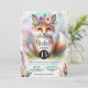 Celebrar em estilo com este convite de aniversário encantador para a raposa! Apresentando uma aquarela branca ilustrando uma raposa charmosa adornada com uma coroa floral, cercada por penas vibrantes e aves delicadas. Perfeito para uma comemoração de aniversário mágica e memorável, este convite é certamente para agradar convidados e dar o tom para um evento alegre. Ideal para amantes da natureza e para aqueles que apreciam um pouco de fantasia. O texto personalizável permite personalizar todos os detalhes da sua ocasião especial. Faça o aniversário do seu filho inesquecível com este convite maravilhosamente desenhado!