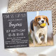 Venha Para O Local. Puppy Pawty! Faça seu aniversário de cachorros ou cachorros com este simples cartão de anúncio de design de slate rustic slate chalkboard and paw print. Adicione a foto favorita de seu filhote e personalize com nome, idade de aniversário e todas as informações de festa de aniversário de filhotes! Este simples design é perfeito para a festa de aniversário dos cães. COPYRIGHT © 2020 Judy Burrows, Black Dog Art - Todos Os Direitos Reservados. Convite de Aniversário para Cães de Papoila