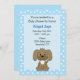 Este Convite para Chá de fraldas apresenta um cachorrinho marrom giro e bonito com um fundo azul com estrelas brancas. Ele pode ser personalizado com todos os detalhes do seu partido.