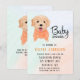 Você vai adorar esse cachorrinho fofo com um suéter laranja claro em texturas de salpicos de aquarela. Produtos correspondentes e convites para chuveiros de bebês.