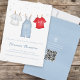 Esta design apresenta um lindo bebê bebezinho azul branco, uma simples tipografia mínima minimalista, com um código de QR digitalizável para URL do site ou link, roteiro de caligrafia de na moda, jeans azuis de denim doce, uma camiseta de roupas de bebês, uma camiseta vermelha branca, uma faixa de roupa simples de meninos, jeans azuis rusticais, uma mamãe para ser chá de fraldas, É uma citação de um menino que diz com o site da loja de presentes online.