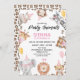 Cute Chamando Todos os Animais de Festa Safari primeiro aniversario Animais de Festa Mataram o convite de aniversário com vários animais safari, chapéus de festas e balões. Um padrão de impressão chita aparece no verso do convite. Este convite de aniversário para animais selvagens poderia ser usado para qualquer idade.