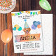 Pawty Ouro Retriever Dog Puppy Birthday é um convite incrível para todos os amantes de cães! Este Ouro bonito Retriever tem um chapéu de festa e balões azuis, roxos, amarelos e verdes.