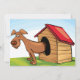 Este design é um cachorro em uma casa de cachorro. A casa de cachorro é de madeira com telhado vermelho e o cachorro está longe. Este cachorro na design de uma casa de cachorros parece excelente neste Convite