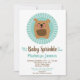 Este convite para a aspersão de bebê neutro em termos de gênero apresenta um cão marrom engraçado com língua cor-de-rosa num fundo de turquesa.