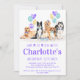 Vamos Pawty! Convide amigos e familiares para seus filhos ou festas de aniversário de cachorro com este cartão de convite para o aniversário de cachorrinhos. Personalize com nome, número de aniversário e todas as informações de festa de aniversário do cão! Visite nossa coleção para combinar decoração de festa de aniversário de animais de estimação e presentes. Esta coleção será favorita entre amantes de cães e mães de cães! COPYRIGHT © 2020 Judy Burrows, Black Dog Art - Todos Os Direitos Reservados. Festa de aniversário de Cachorro Púrpura Convite
