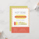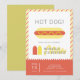 Este simples e moderno cachorro quente! "O convite para o aniversário de uma criança apresenta um cachorro-quente, garrafas de ketchap e mostarda em um fundo branco enquadrado por faixas diagonais vermelhas e amarelas. O verso apresenta um fundo amarelo mostarda. Personalize para suas necessidades. Você pode encontrar mais produtos correspondentes na minha loja.