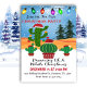 Um convite de festas de Natal com um cacto sonhando com um Natal branco vestindo um chapéu de Papai Noel, no meio do deserto. As luzes de Natal dão a este convite uma sensação divertida e festiva.