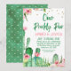 Cactus Floral Rosa Um Aniversário de Pé Rápido Convite A Gêmeas bonitinhas Fizeram o convite de aniversário com alguns cactos floridos, algumas flores de aquarela e pontos de ouro falsos. Este convite de aniversário de fiesta ou cacto, um par picante, está pronto para ser personalizado.
