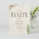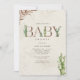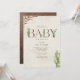 Tema do chá de fraldas de vassoura neutro com a inscrição "BABY" em couro inspirou textura falsa decorada com boho cacto e outros designs botânicos. Designs botânicos nos cantos. O fundo é a aquarela inspirada. O lado inverso é design de couros falsos inspirados.