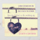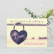 Um convite de casamento fofo e casual. Um lindo cadeado em forma de coração roxo e rosa, estilo desgastado antigo, todo desbotado e arranhado. O cadeado de metal diz amor, em letras cor-de-rosa bonitas. Anexado a uma corda. Fundo amarelo cremoso. A fotografia tem uma qualidade nostálgica. Personalize / customize com todos os detalhes do seu casamento.