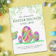 A páscoa está aqui e é hora de comemorar novos começos com uma caçada divertida de catadores em primavera. Esta linda e colorida cor d'água, galinha e ovos lindos, adoráveis brunch de Páscoa e convite para a caça aos ovos é uma forma excelente de espalhar alegria na primavera com seus amigos e família. A celebração de Páscoa verde-escuro do orçamento personalizado convida os amigos e a família a usarem o modelo personalizado e fácil de usar. Galinha de arte psicodélica multicolorida adorável e ovos ilustrações únicas em cores vibrantes e vibrantes, arte original de Catherine Sweetman.