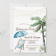 Palma de aquarela com folhas, lanternas, cadeira de praia e parasol.