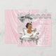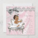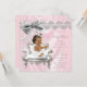 Convite de chá de bebê elegante em rosa e cinza com adorável bebê étnica usando um lindo vestido tutu branco e pérolas em uma bela cadeira branca sobre um belo fundo de cetim rosa brilhante e pérolas. Este convite de chá de bebê elegante em cetim brilhante rosa e cinza com pérolas é facilmente personalizado para o seu evento, basta adicionar seus detalhes na redação e estilo de fonte de sua escolha. Este é um design impresso sem cetim real, pérolas, brilho, etc.