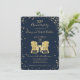 Convite de aniversário de casamento de 50 anos com design de estrelas douradas brilhantes e cadeiras de praia Adirondack, em azul marinho e dourado. Convite de aniversário de casamento de 50 anos.