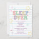Convite de aniversário de noite na casa da amiga com caderno de remendo preppy de universidade pastel com rabiscos de caderno e parte de trás de xadrez.
