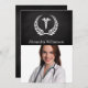 Cinzas pretas/carvão com aspecto curado e símbolo médico caducius branco com uma coroa de louros enquadrada em torno dela. Um presente adorável para a escola de medicina, a escola de enfermagem ou outros serviços de medicina e saúde relacionados com o formando ou o médico em exercício. Todos os Designs Copyright © www.CustomInvitesOnline.com