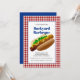 Este convite para churrascos no quintal de Verão oferece um grande gráfico de um cachorro quente e é acentuado com uma fronteira vermelha verificada. O texto personalizado permite adicionar os detalhes da sua parte.