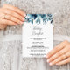 Este convite para o café da manhã floral azul de marinho celeste é perfeito para um café da manhã de casamento de família e amigos de destino. O design apresenta marinhos, azuis e índios lindamente desenhados à mão, bem dispostos em um buquê encantador.