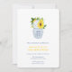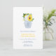 Vaso de jarra de gengibre azul e branco cheio de girassóis ousados contra florais azuis e brancos e um fundo com padrão "Greek Key". Configurei o modelo para um Brunch de Recém-Casados, mas todos os campos de texto são personalizáveis de acordo com as suas necessidades. No verso, você pode alterar a cor de contraste (mostrada aqui como azul escuro) para qualquer cor que desejar, entrando na ferramenta de design (embaixo da área de personalização de texto, clique em "personalizar ainda mais") e alterando a cor de fundo no verso.