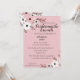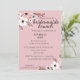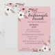Esta imagem mostra um convite para um café da manhã das damas de honra com fundo rosa e design floral. O convite é para uma festa de chá de noiva em homenagem a Annabella Ford. O evento está marcado para 10 de julho às duas da tarde no The Pavillion Restaurant, localizado na Rua Asteron 2385, Jackson, MI.