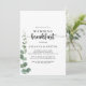 Este convite para o café da manhã do eucalipto, com prazer verde, é perfeito para um evento rústico. A design apresenta galhos e folhas botânicas elegantes e desenhadas a aquarela e desenhadas à mão.