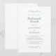 Elegante convite de design clássico formal tradicional para evento de café da manhã das damas de honra, com tom de azul empoeirado romântico e branco. O acabamento sem bordas permite que você escolha facilmente o formato de papel favorito para o visual final. Um fundo transparente permite que a beleza da sua escolha de papel seja apreciada na frente e no verso do cartão. Dois floreios decorativos, cada um contendo um único coração, embelezam a escrita. Personalize com seus detalhes em letras e escrita delicadas. Para obter resultados ótimos, substitua os detalhes do modelo pelos seus próprios detalhes, deixando espaço entre parágrafos como no exemplo, e capitalize onde especificado ou se a palavra for um substantivo próprio e normalmente capitalizado. Envie um e-mail para invitationsuites@gmail.com com perguntas ou solicitações de cores personalizadas.