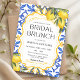 Celebre a noiva com um toque de charme mediterrâneo. Este convite de café da manhã para a noiva apresenta limões bronzeados pelo sol, folhagens delicadas e clássicos acentos inspirados em azulejos, trazendo a beleza e o calor de um dia de verão na costa para a sua celebração.
