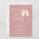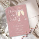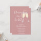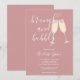 Um convite elegante de brunch e champanhe para chá de noiva com taças de champanhe e nome em letra de assinatura, este convite sofisticado pode ser personalizado com suas informações em letras elegantes em um fundo rosa pó. Criado por Thisisnotme©