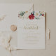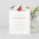 Este clássico convite de café floral de ouro é perfeito para um evento rústico. A design apresenta a cor-de-água, flores brancas, borrifadas e douradas e bagas com folhagem verde dispostas em buquês elegantes.