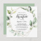 Este convite para o café da manhã de casamento geométrico elegante em ouro verde é perfeito para um evento simples. O design apresenta folhas de eucalipto verde botânico pintadas manualmente, enfeitando uma armação geométrica dourada.